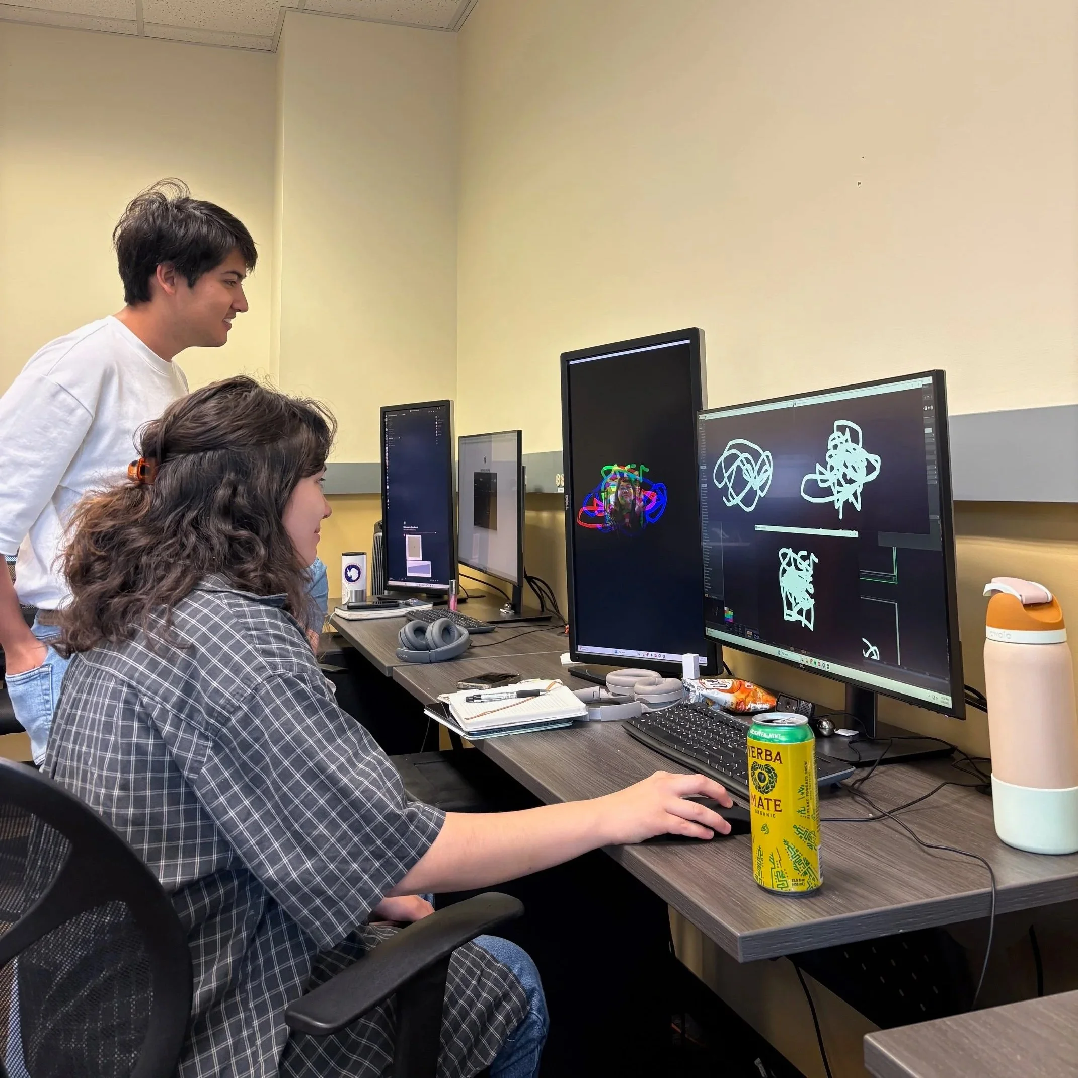 Using TouchDesigner, we designed a game where gameplay reveals a picture! The ball is like a paintbrush that reveals the image below. In our additive color version, the ball reveals colors separately