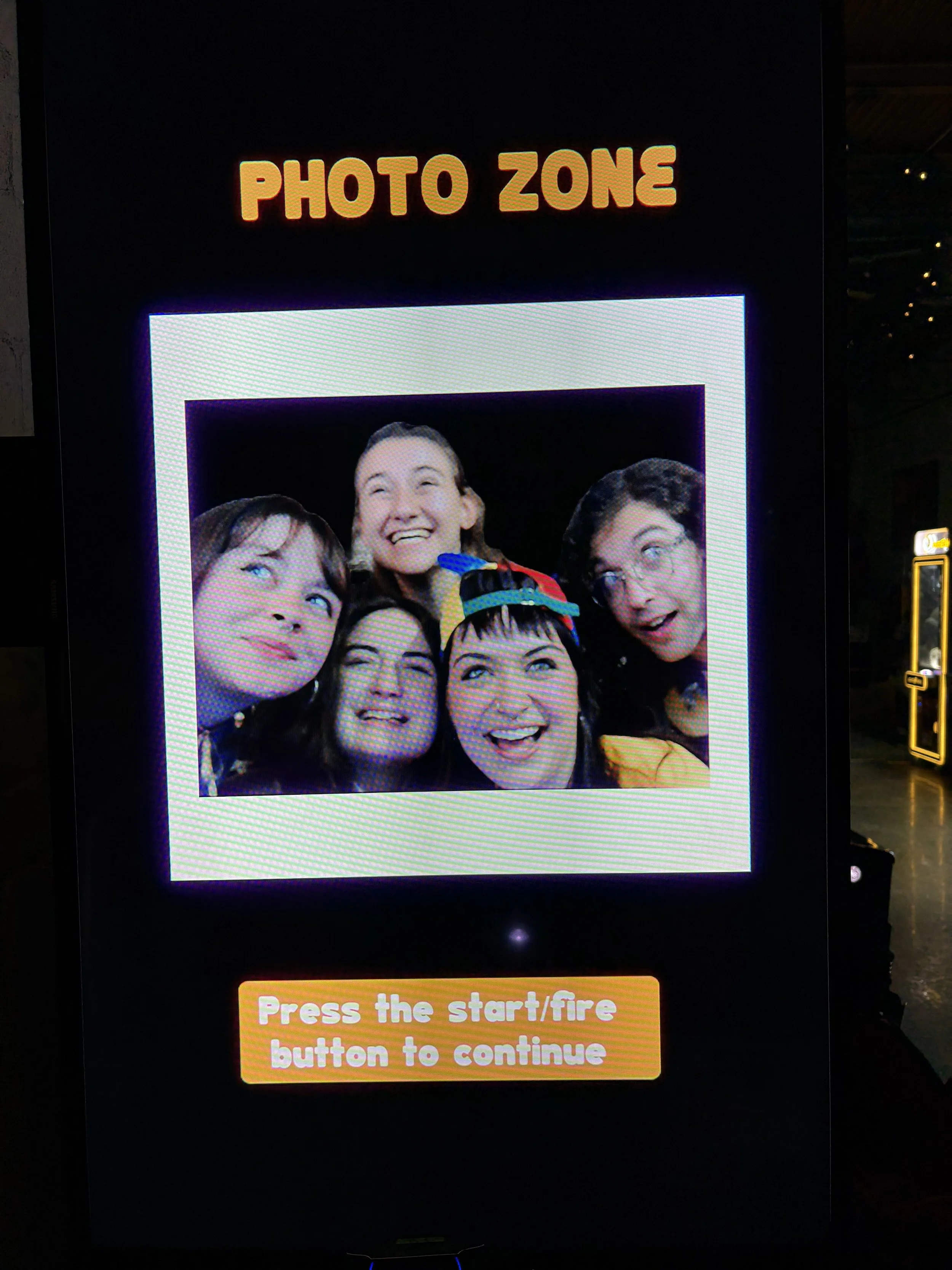 Players take a photo together (prompting multiplayer use!), and their photo is used as the uncovered background for the game! Who doesn’t love a photobooth?